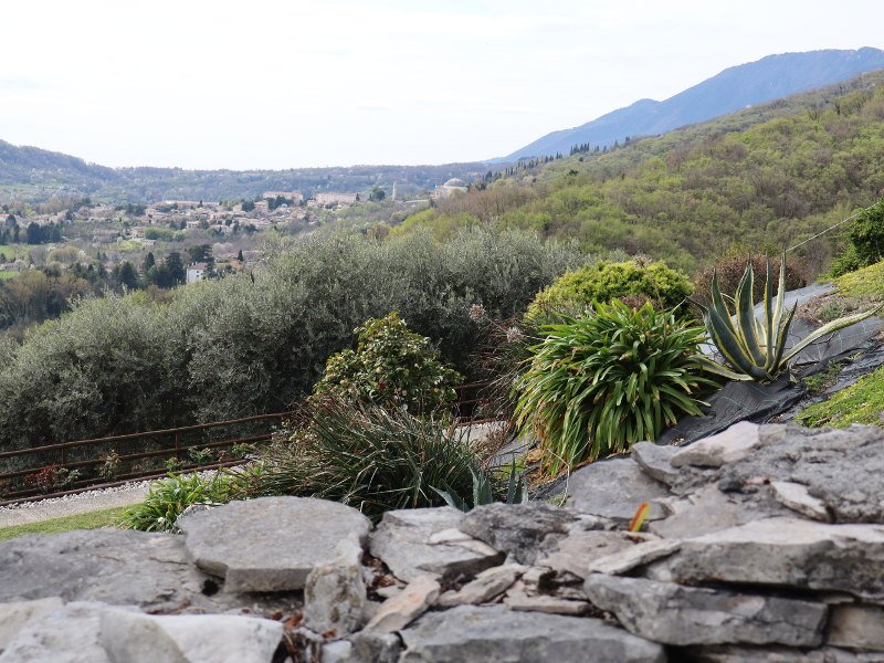 E' tempo di mettersi in marcia, prendiamo la strada che corre sul lato destro del Tempio (Via Giardin), tra il verde degli uliveti spunta un albero con una bella fioritura color bianco. Qualche passo e deviamo verso destra, imboccando il percorso pedonale.
