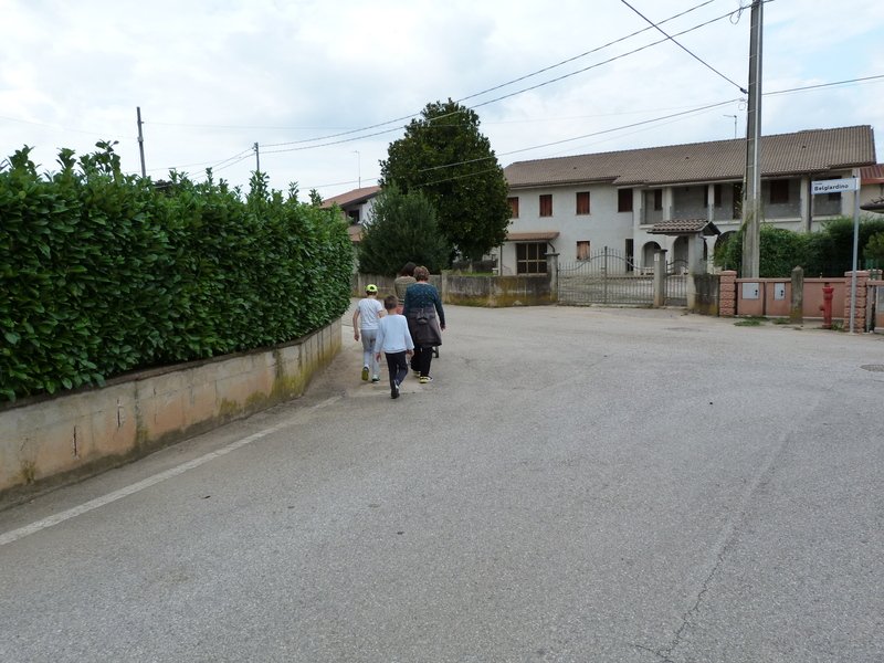 Da qui prendiamo la via di fianco al parco giochi dell'asilo, Via de Gasperi, che percorriamo fino a raggiungere il Parco pubblico e la nostra auto.
