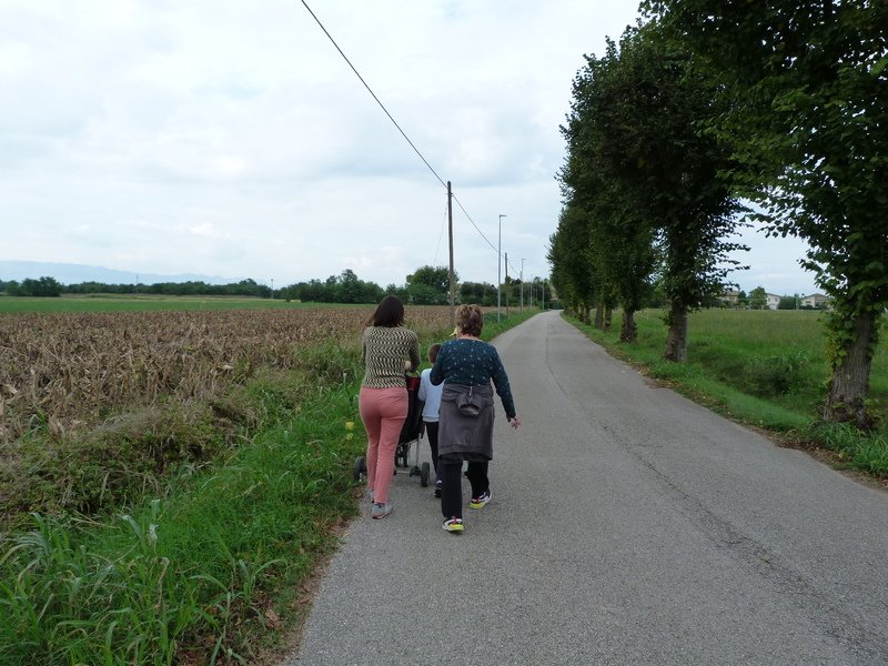Un raggio di sole spunta tra le nuvole e Samuele lo indica a tutti. Arriviamo nei pressi di una grande pozzanghera, che Marco Albino soprannomina il "Lago di Garda", e in breve siamo in Via Madonnetta (asfaltata) e proseguiamo verso sinistra prestando attenzione ai trattori in transito.