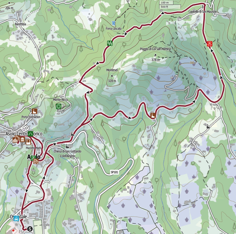 - Descrizione breve: Una camminata attorno ad Asolo lungo i pendii collinari tra borgate, chiesette e capitelli. Percorreremo parte del percorso didattico BoscAsolo tra i boschi della Città dei Cento Orizzonti per ultimare l'escursione in centro città.