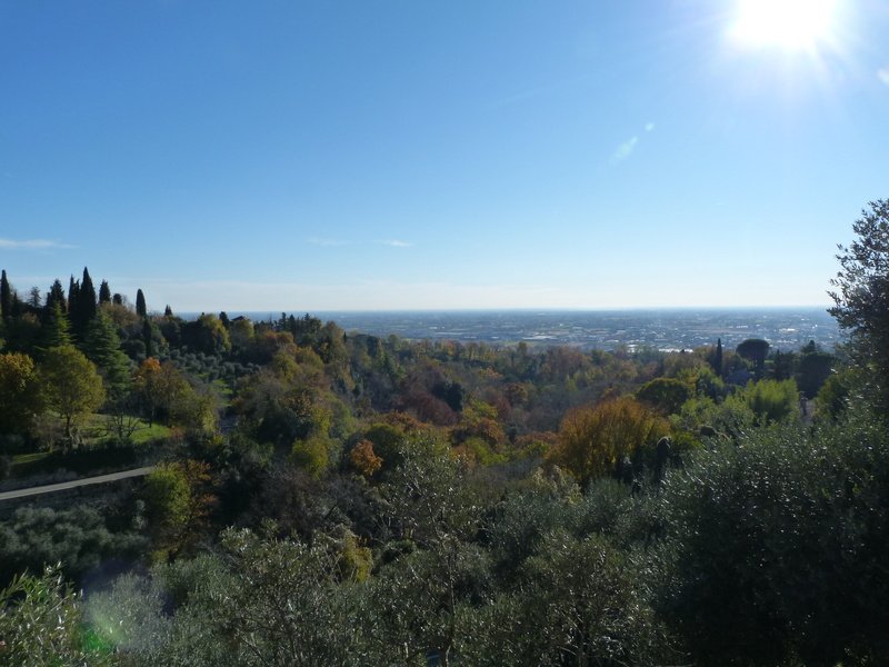 Raggiungiamo un Bivio e saliamo verso sinistra in Via San Martino, proseguendo imperterriti lungo questa strada. Sullo sfondo si aprono dei bei panorami sulla pianura veneta. Sebastian è attirato da alcuni frutti rossi che spuntano da una siepe; i corbezzoli che mamma Evelina conosce bene. L'unico che ha il coraggio di mangiarli come al solito è Samuele...il buongustaio di famiglia.