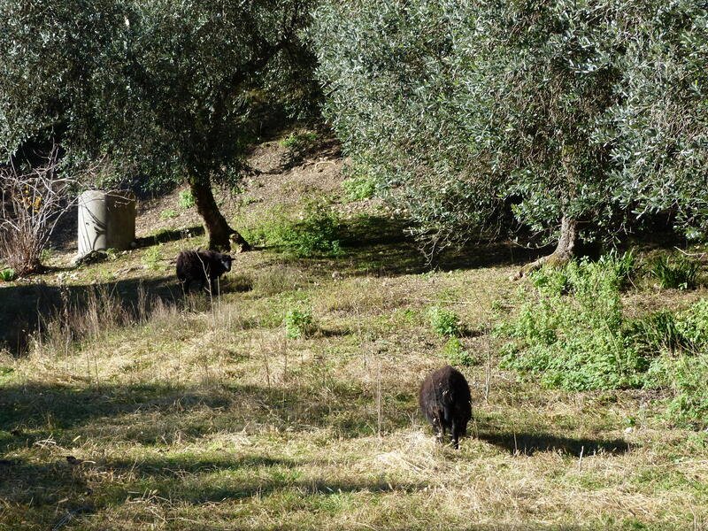 Giunti alla "neve" mi guardano con la faccia indispettita e per fortuna non mi sono beccato al posto della palla di neve, una palla di cemento. Qualche passo e oltre un recinto ci sono alcune pecore nere che fanno subito dimenticare la neve mancata e così siamo alla forcella con a lato il capitello di San Maurizio.