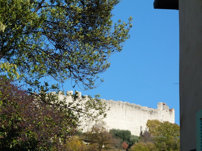 Facciamo un 'ampia curva e superata l'entrata del parcheggio interrato, andiamo a destra in Via Cipressina. Degli antichi muri in pietra costeggiano questa viuzza. Arriviamo all'incrocio con Via Foresto Vecchio, proseguiamo a destra restando sulla parte alta. Sopra di noi la Rocca col suo colore "bianco" spicca in mezzo al verde delle chiome.