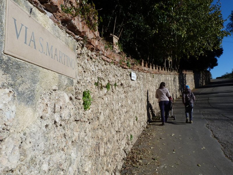 Proseguiamo per un altro po' con ancora dei bei panorami alla nostra destra e arriviamo ad un bivio. A destra in breve tempo potremo arrivare alla Rocca (attenzione che alcuni tratti in passeggino non sono possibili) ma optiamo per scendere a sinistra (Via Rocca) e fare un giro in centro città.