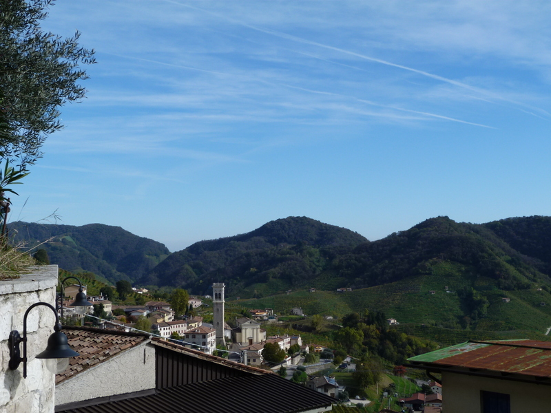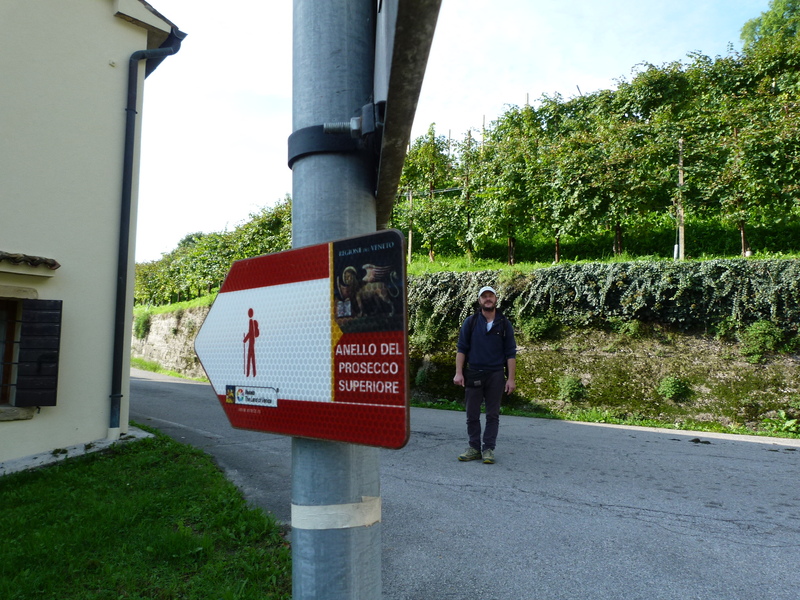 The Prosecco Ring is well marked with dedicated signs, which we’ll be following pretty much the whole way. At a crossroads, we turn left onto Via Saccol. We’ve only just started, but reading “Saccol” immediately makes me think of sacol (the local cured meat known in Italian as ossocollo) and I suddenly crave a sandwich and a glass of wine. Evelina, on the other hand, is more focused on taking in the views all around us.