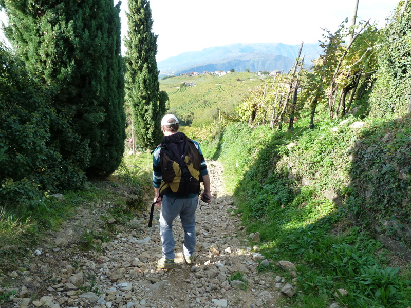 Santo Stefano di ValdobbiadeneThe Hermitage itself doesn’t offer a great view since the vegetation has grown thick all around, but I think we’ve already had plenty of spectacular panoramas. From here, we head down toward Santo Stefano by taking a small path on the right. The descent is steep, so we pay close attention — especially me, with my legendary balance of a tipsy tightrope walker.