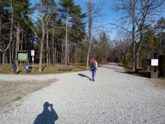 Raggiungiamo un bivio e teniamo la destra fino ad arrivare al cancello di entrata dell'Isola dei Morti, che oltrepassiamo. Non so come ma parlando con Samuele e Marco il discorso finisce sulla Befana; Evelina prende un ramo per mimare il volo sulla scopa e tutti i bimbi vogliono salire sulla scopa volante e iniziano a camminare per un po' così.