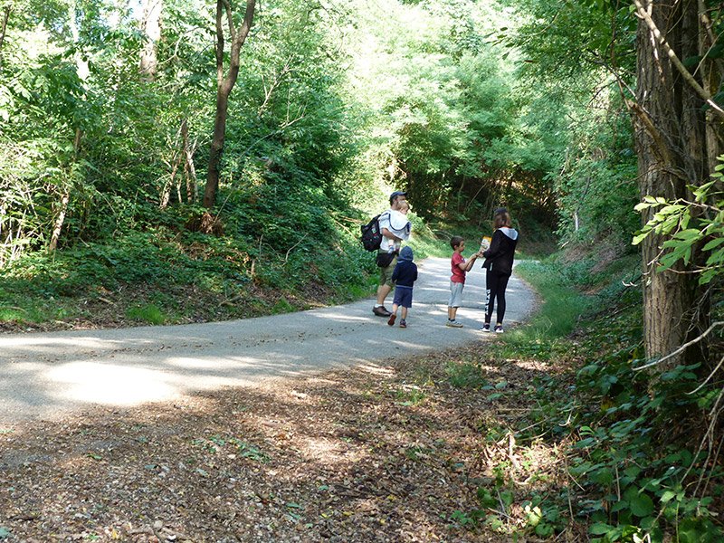 Incrociamo qualche bicicletta ma se non fosse per le grida dei bimbi con Samuele che fa il verso ai fratelli, probabilmente saremo quasi in un silenzio totale. Passiamo accanto alla baita allegra che sinceramente non so cosa abbia di allegro visto che l'ho sempre vista chiusa in tanti anni che bazzico questo zone. Poco dopo ci ritroviamo in un breve tratto senza bosco ai lati.