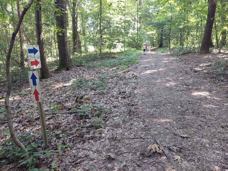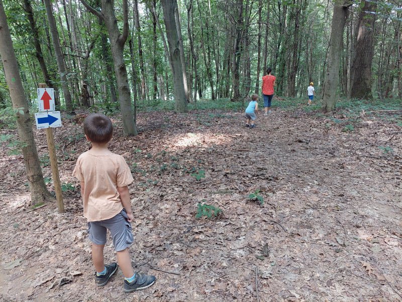 Da qui seguiamo ancora la via segnalata e commettiamo un errore perché seguendo le frecce giriamo a destra e ci mettiamo a ripercorrere nuovamente il Pontello Track (d'altronde è un sentiero pensato per gli allenamenti ed è normale che venga indicato come proseguire ad anello). Quando, guardando tra i rami, scorgo nuovamente la radura assolata, con un fischio raduno tutta la truppa e torniamo indietro fino all'auto.