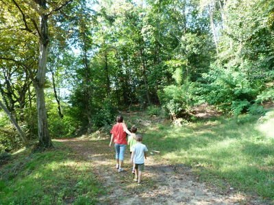 Le chiome verso l'autunnoPasso dopo passo siamo all'interno di questa bella collinetta e i miei lanzichenecchi continuano a scorrazzare avanti e indietro. Samuele trova un rametto a forma di uno e lo mostra a tutti mentre la mamma scorge qualche prima castagna lungo la via.